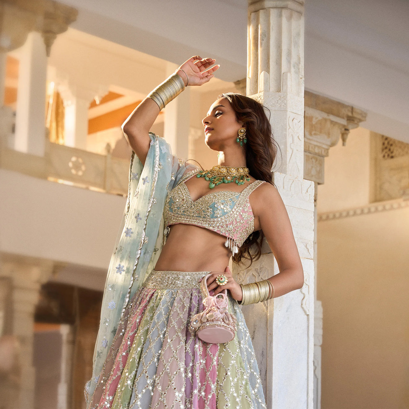ABHINAV MISHRA LEHENGA BLOUSE DUPATTA MULTICOLOUR -
