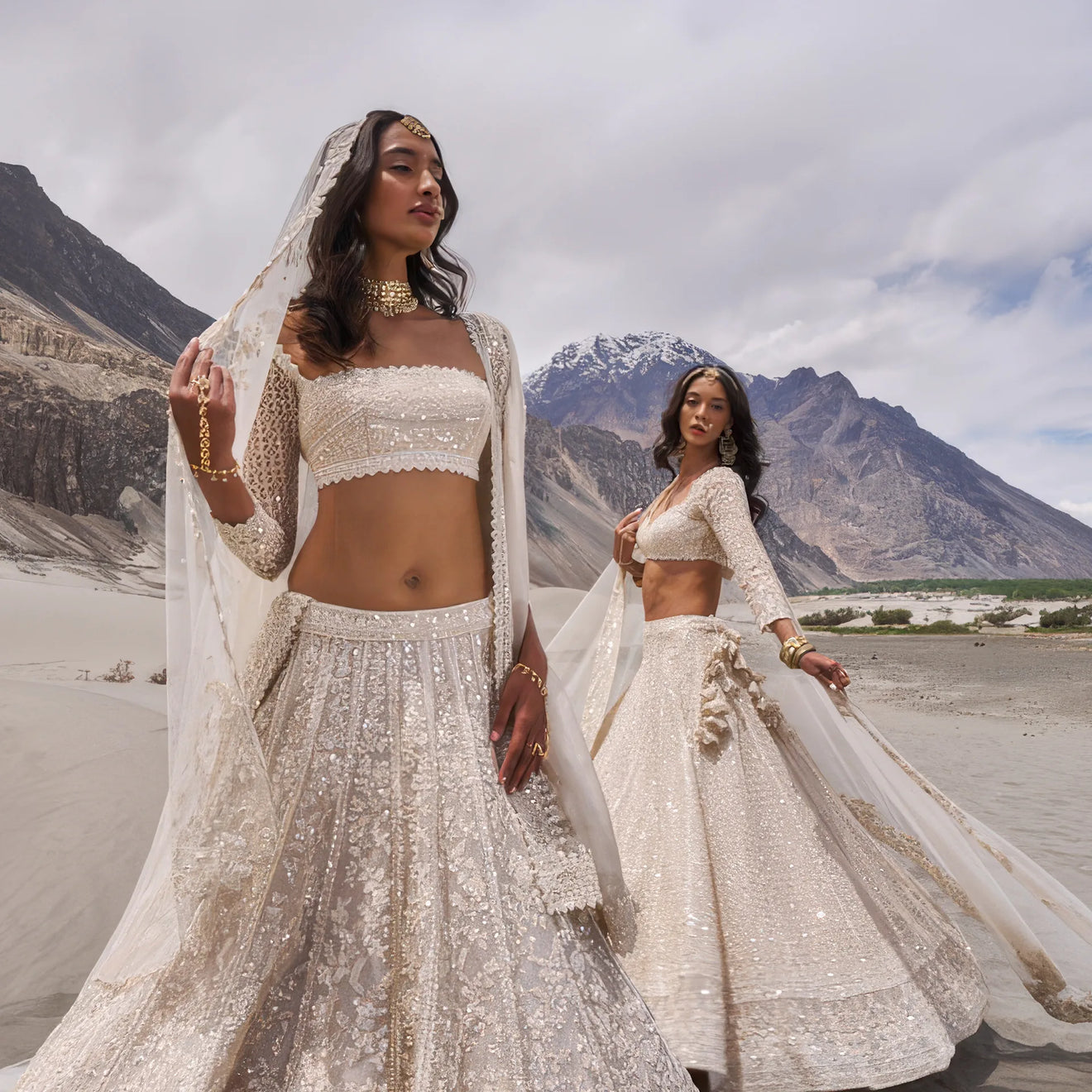 ANUSHREE REDDY LEHENGA BLOUSE DUPATTA GREYISH IVORY -